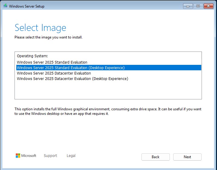 - If Windows Server 2025 does not work on your machine, you can use Windows Server 2022.