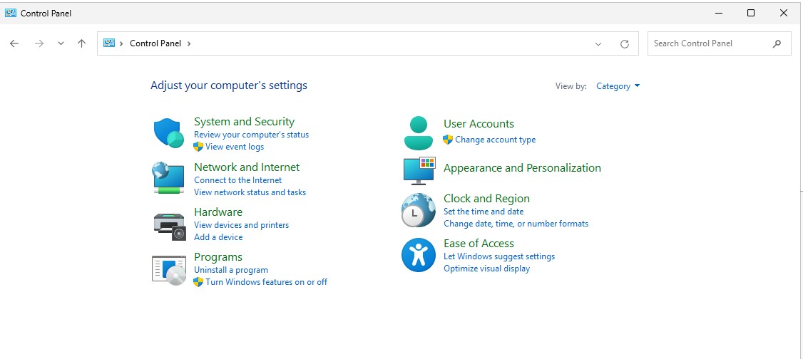 Navigate to the Control Panel (Shortcut: Windows+X).