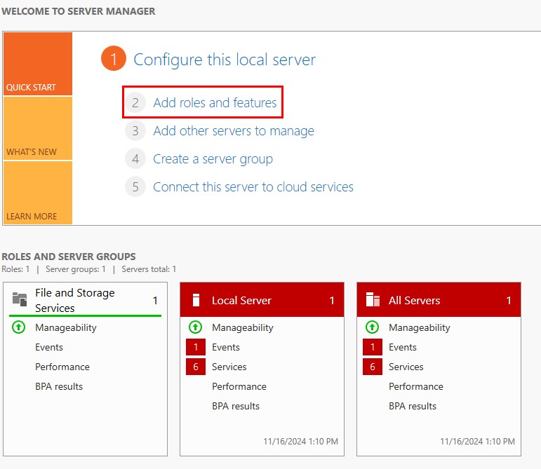 Go back to “Server Manager” ➔ “Add roles and features”.