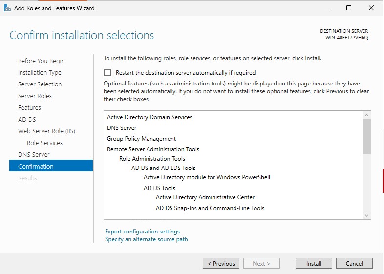Select “Next” until you get to the Confirmation tab. Select “Install”.
