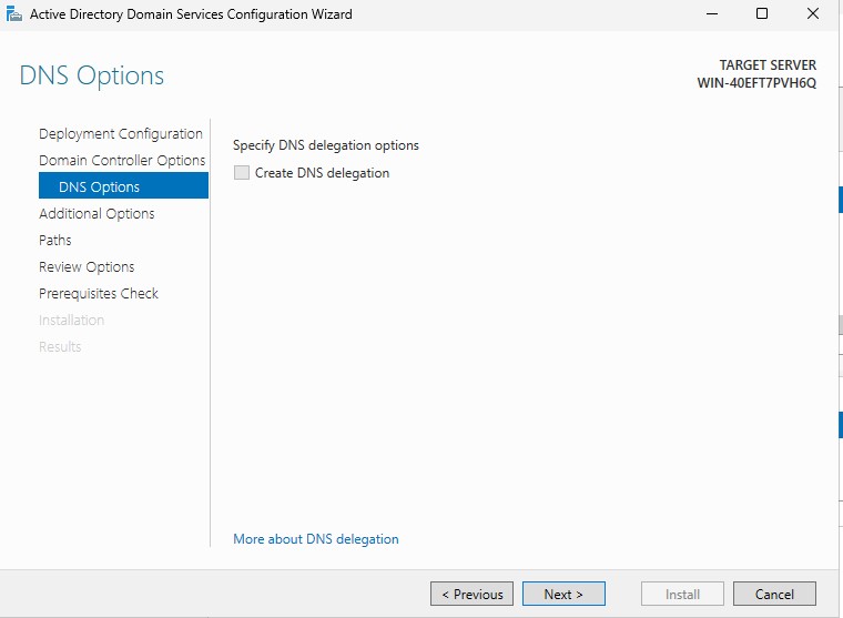 Leave the “Create DNS delegation” box blank ➔ “Next”.