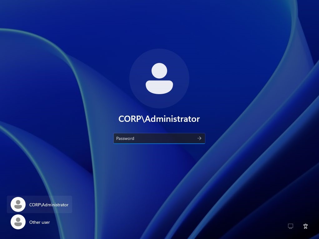 You can now login under the CORP\Administrator account. Notice how the prefix of Administrator is CORP.