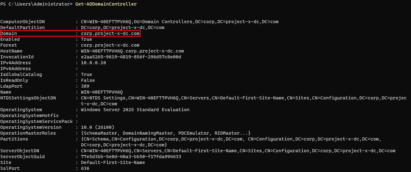 To verify this Server is apart of the domain, open a new PowerShell session, type in:
