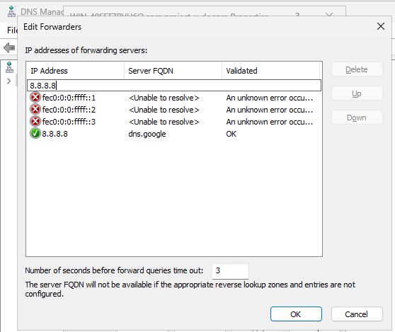 Add in 8.8.8.8 ➔ Select “OK”. This will allow us to still use the Internet from Windows Server 2025.