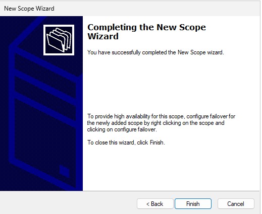 Run through all the defaults (don’t worry about excluding IP addresses or lease expiration).