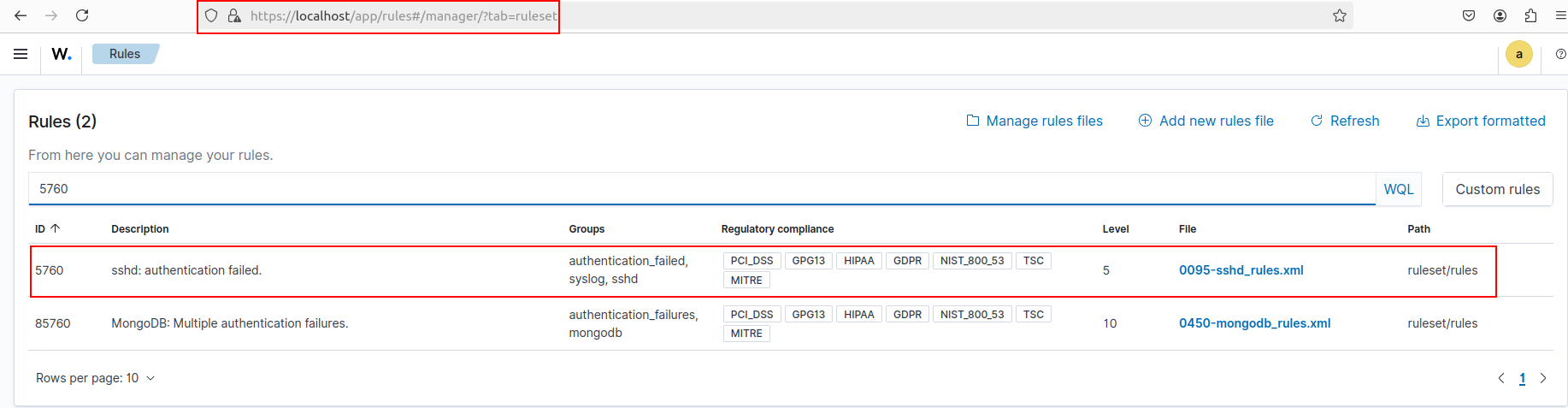 Navigate to “Server management” ➔ “Rules”. And look up “5760” to view more detail about this rule.