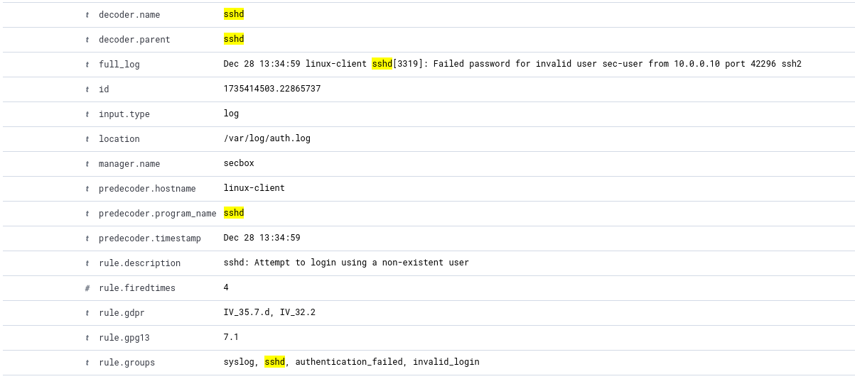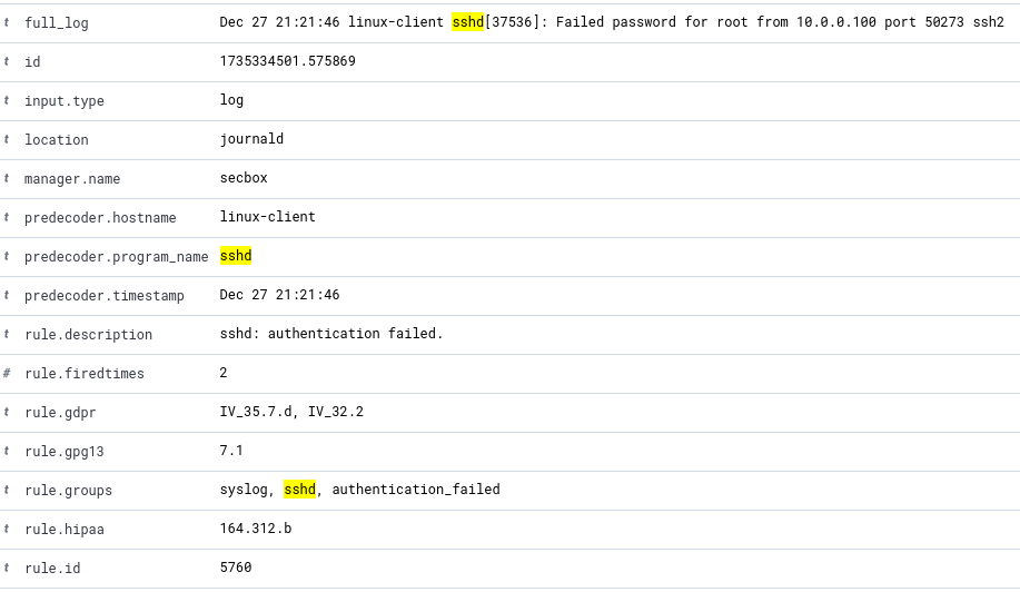 Wazuh has a built-in rule detection to detect authentication failures from the sshd daemon.