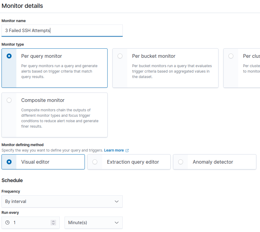 Title the Monitor “3 Failed SSH Attempts”. Leave everything else default.