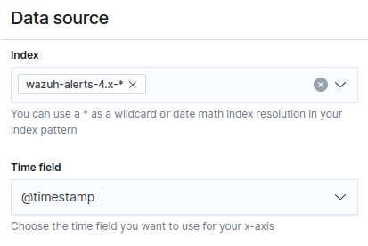 Scroll down to “Data source”. Add the following for the Index, hit the Enter key after typing: wazuh-alerts-4.x-*