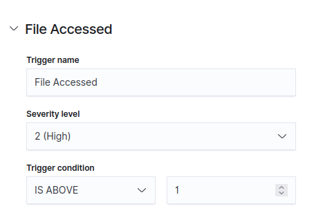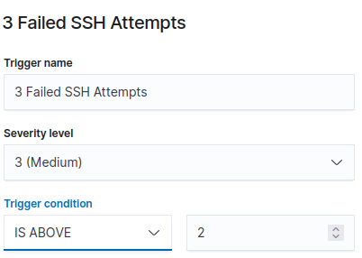 Add the following conditions to the Trigger. We set the “Severity level” to 3 (Medium) and the “Trigger condition” above 2.