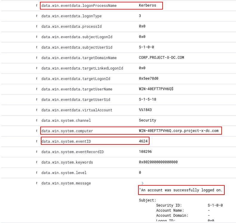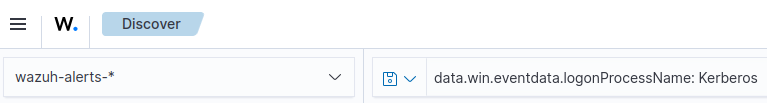 Go to “Explore” ➔ “Discover” tab ➔ Make sure wazuh-alerts-* is selected. Look up: data.win.eventdata.logonProcessName: Kerberos