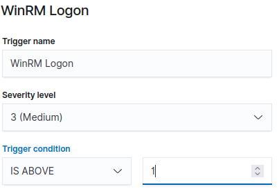Add the following conditions to the Trigger. We set the “Severity level” to 3 (Medium) and the “Trigger condition” above 1.