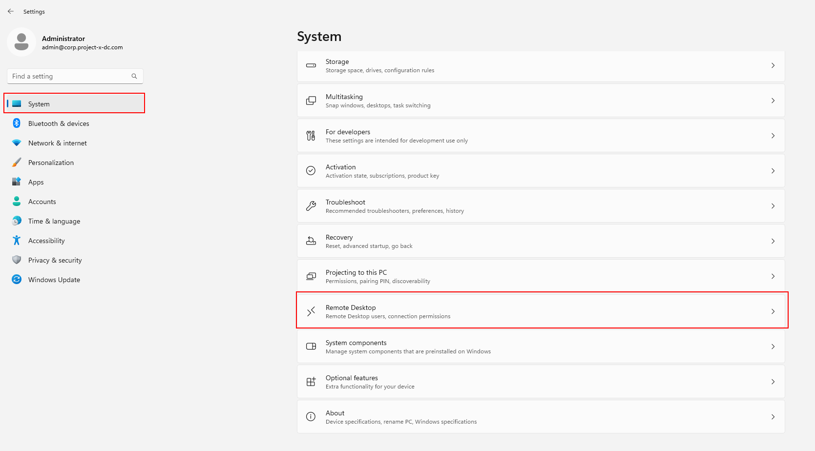 Go to “Settings” ➔ “System” ➔ “Remote Desktop”.