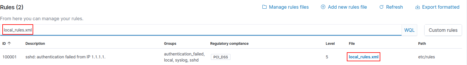 Search “local_rules.xml” ➔ Click the name under the File tab.
