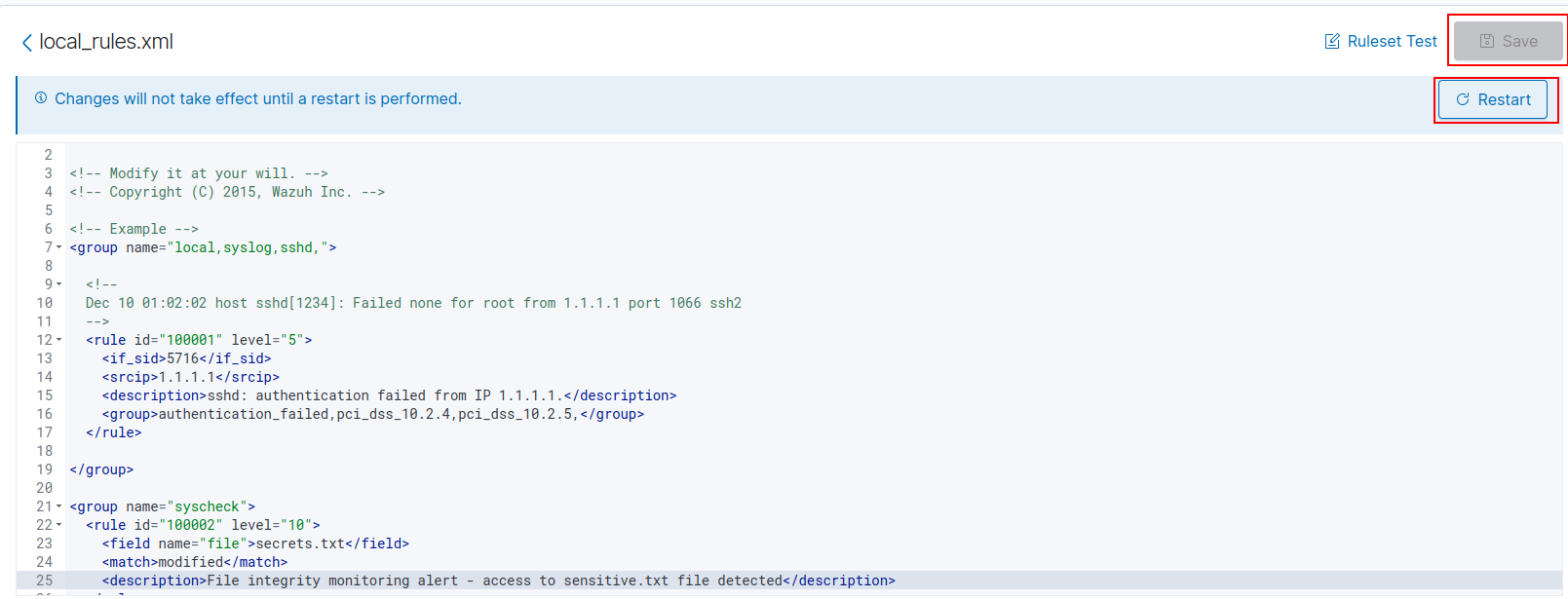 Let’s create an alert for accessing the secrets.txt file. This time, we are going to use the local_rules.xml file to define a custom rule to monitor for changes occurring.