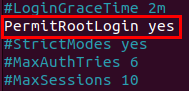 Navigate to the #PermitRootLogin block. Uncomment and delete prohibit-password statement, change to yes.