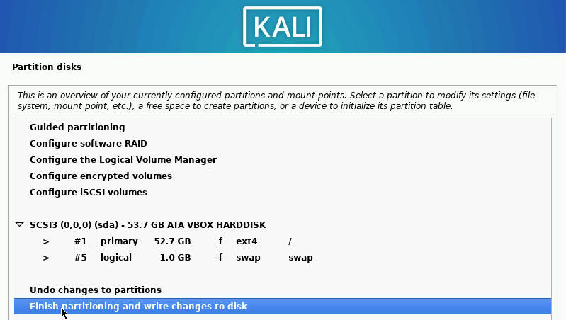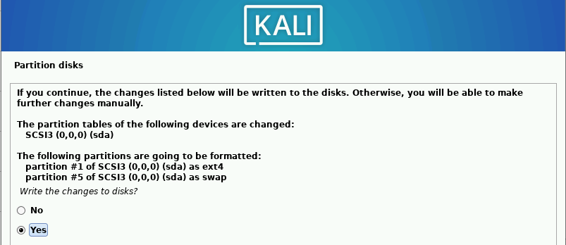 Change “Write the changes to disks?” to “Yes” ➔ “Continue.”