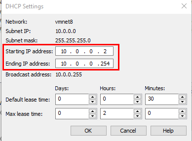 VMNet8 comes with the standard NAT settings, however we need to change the IP addresses to conform to our IP address space.