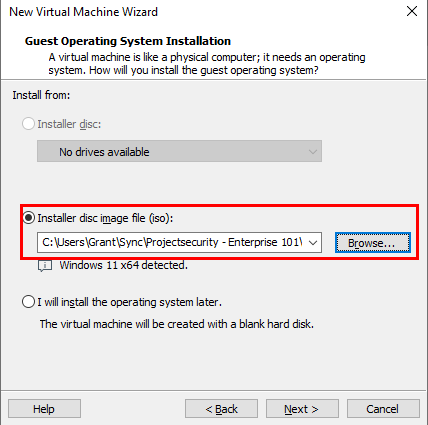Select the .iso file under Browse.