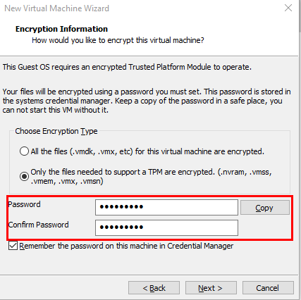 Choose a password for the TPM. Make sure to save this password if needed.