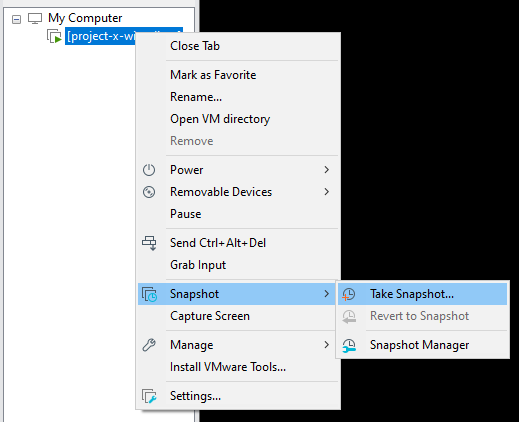 Right-click on the Virtual Machine ➔ "Snapshot" ➔ "Take Snapshot..."