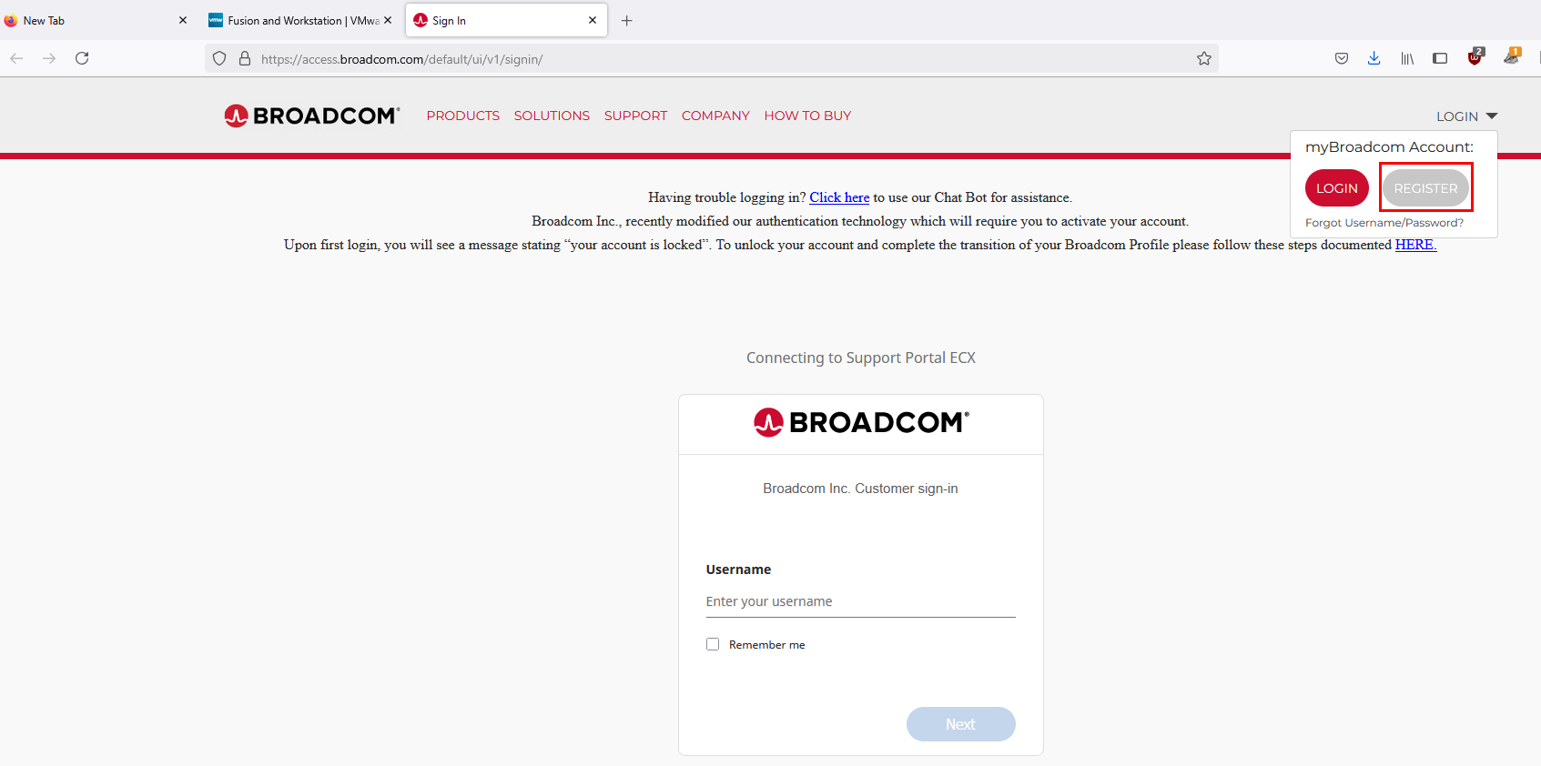 You will be redirected to a Broadcom page ➔ "Register".