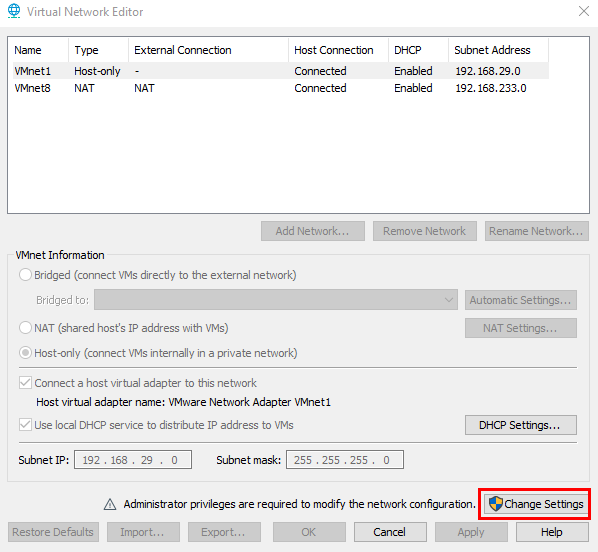 We will be editing the default VMNet8 NAT network. This will allow us to connect with each of the Virtual Machines while also connecting to the Internet when needed.
