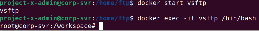 docker exec -it ftp-svr /bin/bash.