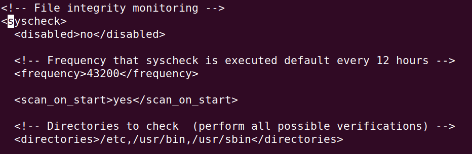What we are doing here is setting up Wazuh to monitor a directory location (as denoted by the directories statement), for this specific location.
