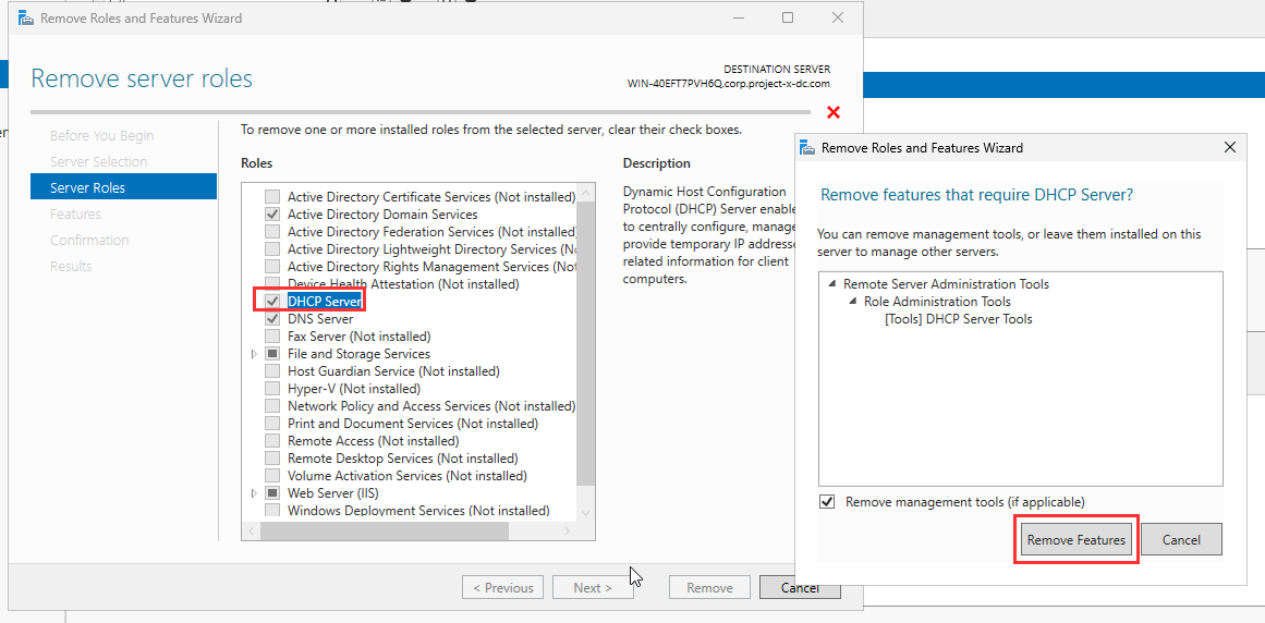 You will now no longer see DHCP as a service after you refresh Server Manager.