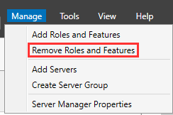 Navigate to "Manage" ➔ "Remove Roles and Features".
