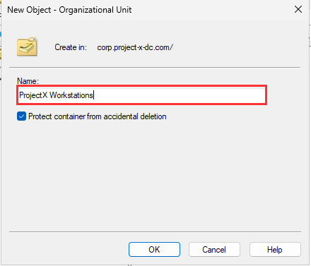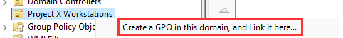 We will create an OU, ProjectX Workstations, which will allow us to apply GPO policies to our workstation hosts.