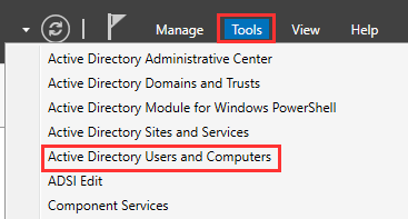 Navigate to "Tools" ➔ "Active Directory Users and Computers".