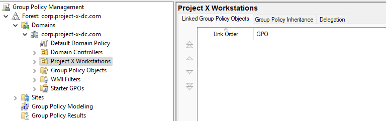 Navigate back to the Group Policy Management Console ➔ Select "ProjectX Workstations".