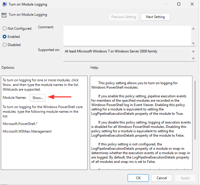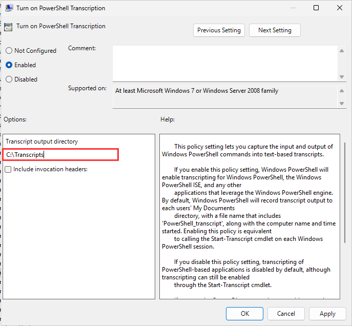 GPO Location: Computer Configuration > Policies > Administrative Templates > Windows Components > Windows PowerShell