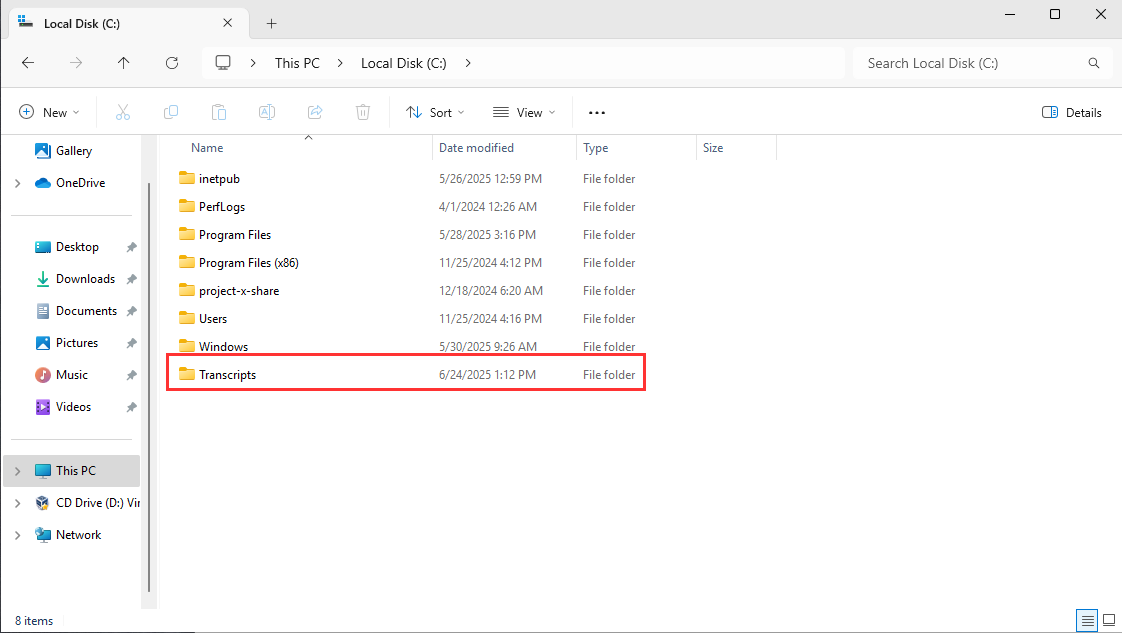 C:\Transcriptsfolder exists and has appropriate permissions on client machines.
