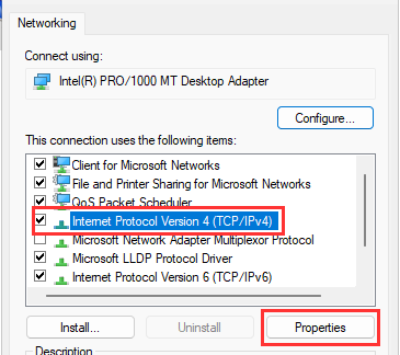 Choose "Internet Protocol Version 4" ➔ "Properties"