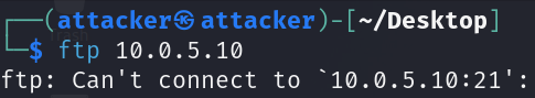 If we try to ftp into 10.0.5.10 from the attacker machine...