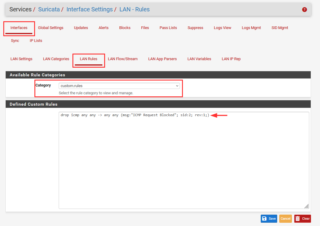 We can add the same block ICMP all rule we used when setting up Suricata.