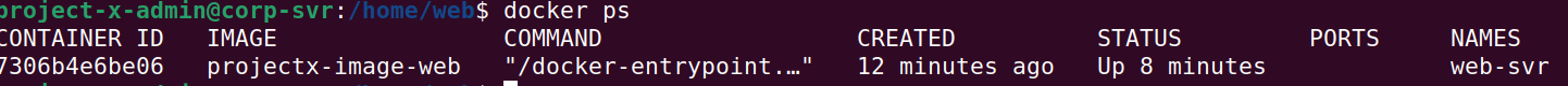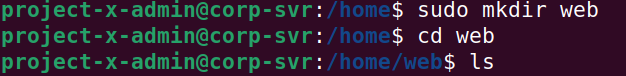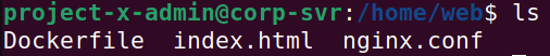 The web directory will be where we store all of our configuration files to provision and run the [project-x-corp-svr-web-svr] container. We will create three files.