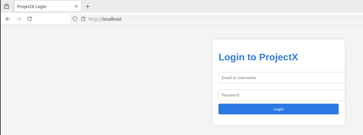 Navigate to Firefox under [project-x-corp-svr]. Enter http://localhost.