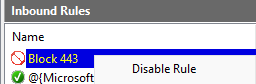 Disable the INBOUND rule by Right-clicking "Block 443" ➔ "Disable".