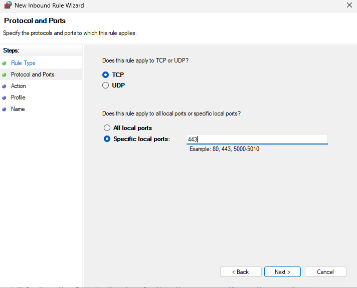 Here we can define our rule type, let's keep it simple, choose "Port".